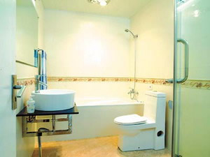 比如這套小復(fù)式中上下兩層都有洗手間,設(shè)計師便提出了“一主一輔”的方案,一樓的衛(wèi)浴間供客人使用,于是只裝了一個座便器、一個臺盆和一個花灑,并簡單地用浴簾將衛(wèi)浴間間隔開來。而二樓的衛(wèi)浴間則講究許多,由于主人非常強調(diào)衛(wèi)浴間的裝修,因此設(shè)計師在二樓衛(wèi)浴間里既安裝了浴缸,又設(shè)置了一個小型淋浴房,讓主人泡澡洗浴兩相宜。最讓主人感到滿意的是,二樓的衛(wèi)浴三件套僅花了982元,因為恰好遇上建材超市進行衛(wèi)浴三件套的促銷。