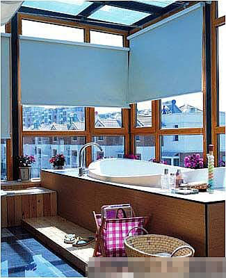三樓的陽臺(tái)寬闊獨(dú)立,采光極好,設(shè)計(jì)師將浴缸搬上陽臺(tái),頗具創(chuàng)意的陽光浴室溫情洋溢,處處顯露生活情趣。自控窗簾、近2米的大浴缸、實(shí)木地臺(tái)、寬闊的景觀視野……令沐浴舒適無比。
