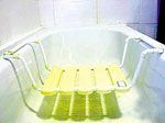 浴缸中的“浮椅” 大大的浴缸,縱然四壁滑滑,但是它也別想欺負愛玩水的小朋友,浴缸上可配上小朋友的“寶座”了。方便的小吊椅,只要根據(jù)浴缸兩邊的距離調(diào)節(jié)好適合的金屬支架的寬度,就能懸浮于浴缸里面,讓小孩子泡在水中盡情體會沐浴的樂趣,還可以把玩具也拿進浴缸,潛艇、海戰(zhàn)……想怎么玩就怎玩,浴缸頓時成了他們的小型游泳池! 初為人母的媽媽們也很高興,可以跟小寶寶一起洗澡,加強自己與寶寶的親密關(guān)系,又不必操心孩子會在浴缸里面嗆水。而大人們平常也可以在上面坐坐,利用它享受沐足的舒適和愜意。 |