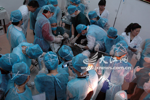 醫(yī)生圍著手術(shù)臺上的“壯壯”。