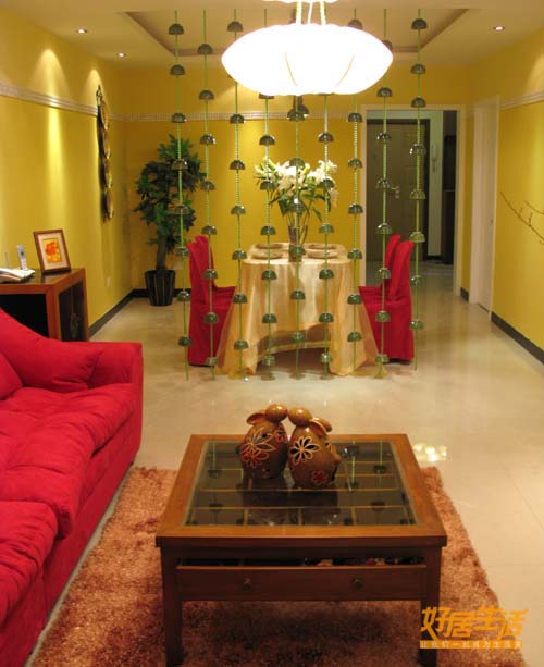 大客廳雖然給人提供了舒適自如的活動空間,但有時也給人空曠的感覺。客服這一問題最簡單的辦法是巧妙地使用各種小飾品。例如,在大客廳的一面墻上懸掛一組較小的裝飾畫,而不是一幅很大的裝飾畫,即可取得很好的裝飾效果。此外,大客廳使用圖案不叫抽象,色彩較為艷麗的塊毯,也會有獨特的裝飾效果。在大客廳中點綴綠色植物,使用有變化的光源,也會讓這里變得不至于太空蕩。