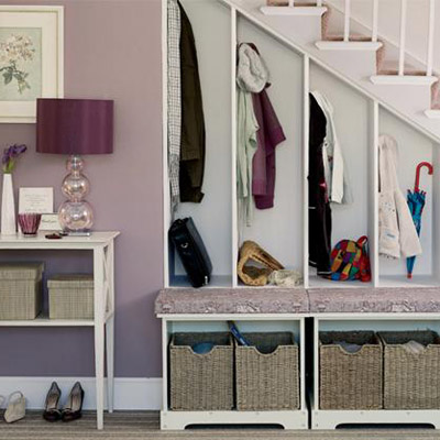不要浪費(fèi)樓梯底下的空間哦~給家里的每個(gè)人在這里布置一個(gè)小隔間,可以?huà)焐献约旱囊路?,或者存放些個(gè)人的小物品。樓梯的層次高度正好合適分別放孩子和大人的衣服,而且高度孩子們也都?jí)虻闹?