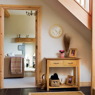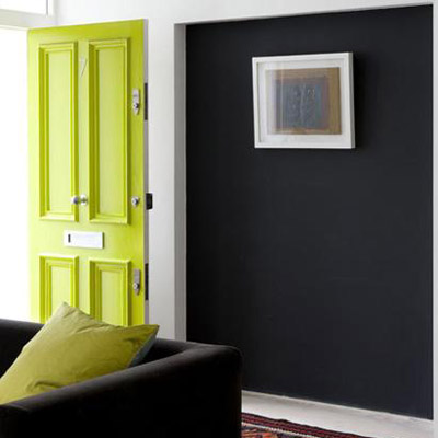 把門(mén)粉刷成高雅的酸橙色,讓房間不至于顯得那么擁擠。這個(gè)門(mén)廳十分的適合搭配現(xiàn)代起居室,黑色的墻壁和沙發(fā)時(shí)尚非凡。地上的古典風(fēng)格的地毯,配上這些現(xiàn)代元素的家具,風(fēng)格更加的耐人尋味。