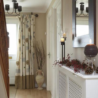 這個(gè)走廊也許沒(méi)有太多的個(gè)性,有點(diǎn)中性化,但是細(xì)節(jié)的設(shè)計(jì)卻是獨(dú)具匠心的。門(mén)廳的盡頭掛一款舊織物窗簾,和褐色的墻壁和白色的柜子完美搭配。
