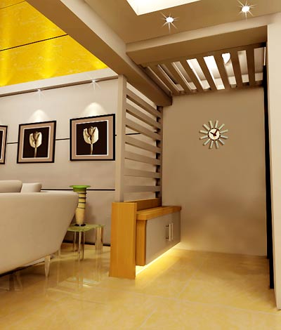 此外,還可以在門廳與客廳或衛(wèi)生間分界處,設(shè)計上一套屏風(fēng)或玻璃隔斷,,既保證了門廳的完整性,又減弱了空間的封閉感。
