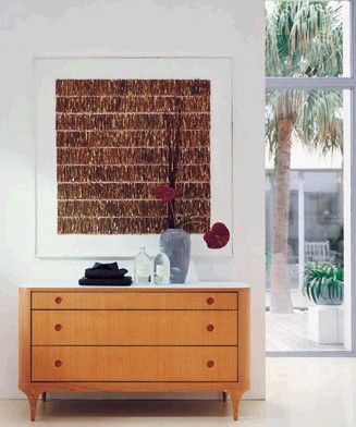 可更換玄關(guān)條案上的一條桌旗,或在古舊風格的鞋柜、座椅上鋪設(shè)一塊具有異國情調(diào)的花布,或在墻面上懸掛一塊民族色彩濃烈或抽象的布藝,都可能打造令人耳目一新的風景。
