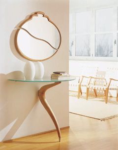 墻面上掛一面造型新穎的鏡子,既可擴大視覺空間,又可在出門前整理妝容。不過,鏡子與矮柜在設(shè)計上應相互呼應,還可根據(jù)需要調(diào)整角度;另外,比如別致的相架、精美的座鐘、古樸的瓷器等都是不錯的選擇。