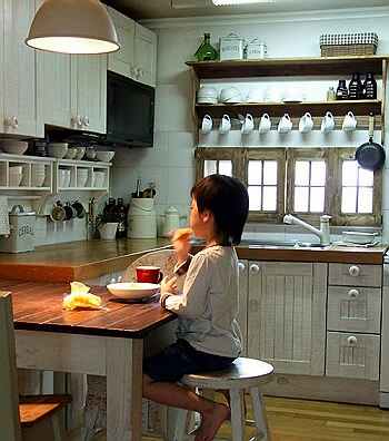 空間大時(shí)可選擇獨(dú)立料理臺(tái),因?yàn)樽钚—?dú)立料理臺(tái)都有90x 60公分大,最好的料理臺(tái)應(yīng)為120 x 90公分。獨(dú)立式料理臺(tái)可當(dāng)早餐臺(tái)使用,下面可做抽屜、層板放雜物。
