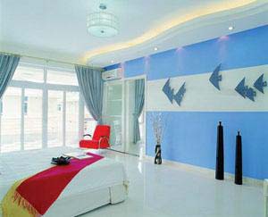 總之,光線比較充足的墻面可選中性偏冷色調(diào)的色彩,如湖綠色、淺藍(lán)色等;室內(nèi)光線較暗淡的可選中性偏暖的顏色,如米黃色、亮粉、紅色等。