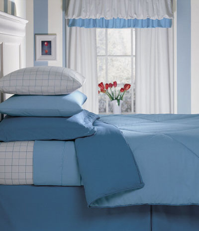 藍 白的素雅色調(diào)很是符合熱鬧喧囂之后渴望回歸恬靜的職業(yè)女性。給人感覺祥和寧靜,舒服的印象更是時刻存在。尤其放置在相對空間比較小的臥房,一張床就充斥了一個小天地,倍顯溫暖。