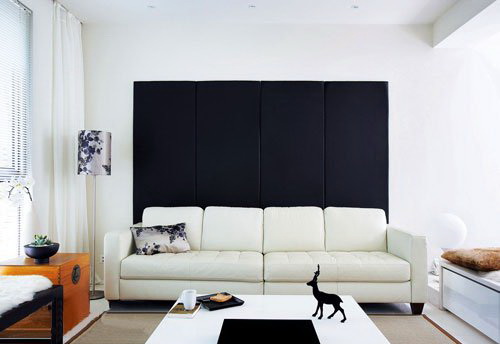 一條簡單的黑色長條色塊增加了角落的深 度,本來容易被忽視的角落反而成為了居室里的亮點(diǎn)。其它配飾的選擇除了顏色非黑即白之外,最 好選擇不同的材質(zhì)和質(zhì)地,這樣就會(huì)有既豐富又單純的效果。