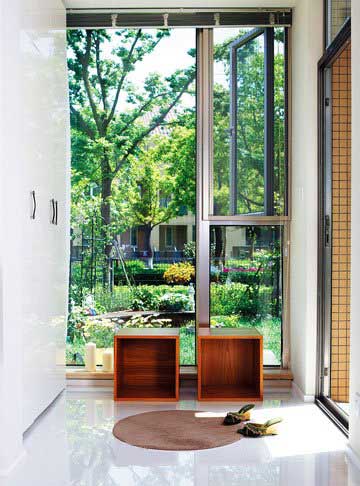 干凈透明的落地窗戶,戶外的綠色透人心脾。