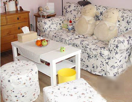 再小的家也不能沒有溫馨的氛圍,何況是婚房呢,絕對不能虧待自己,一看這對新人就是童心未泯,兩個(gè)大玩偶著實(shí)可愛,白色碎花沙發(fā)套和凳子很田園風(fēng)潮,2009年田園風(fēng)格家居仍然占有一席之地。