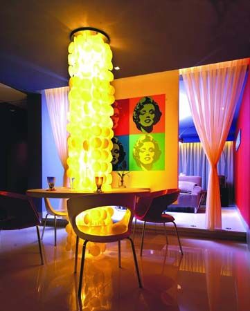 此外,有的家庭餐廳設(shè)有吧臺或酒柜,則可利用軌道燈或嵌如式頂燈加以照明,以突出氣氛。用單燈罩直接配光型吊燈投光于餐桌的方法在當(dāng)前比較流行,特點(diǎn)是光照效果好,燈具造型簡潔,線條分明,美觀大方。有的家庭餐廳以玻璃柜展示精致的餐具、茶具及藝術(shù)品,若在柜內(nèi)裝小射燈或小頂燈,能使整個(gè)玻璃柜玲瓏剔透,美不勝收。
