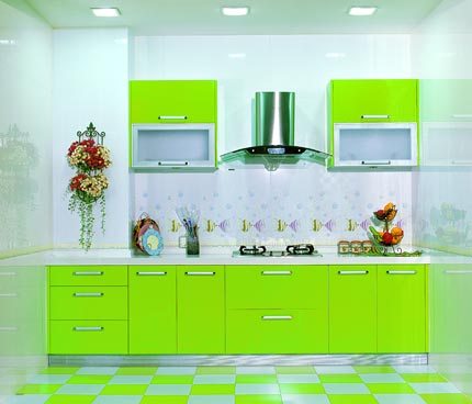 廚房間的操作環(huán)境是高溫環(huán)境,選擇瓷磚的色彩應(yīng)當(dāng)以淺色和冷色調(diào)為主,譬如白色、淺綠色、淺灰色等色澤。這樣的色彩會(huì)令人在高溫條件下感受到春天的氣息和涼意,并且,淺色調(diào)能令人感覺空間在擴(kuò)大延伸,避免了深色調(diào)在狹小的空間里使人感到沉悶和壓抑。
