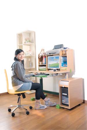 名家具展展出的“奪標(biāo)”、“愛(ài)王”品牌家具的升降電腦桌,便是一款頗受歡迎的新品。這款?yuàn)Z標(biāo)安全手搖或提拉升降計(jì)算機(jī)桌,配備有文具收納功能之鍵盤(pán)架、電線集線槽、四個(gè)桌腳微調(diào)高度等功能;而多功能書(shū)架則可在3秒內(nèi)變身計(jì)算機(jī)架,還有可上下調(diào)整的層板、左右微調(diào)的隔書(shū)板、旋轉(zhuǎn)的文具盒、活動(dòng)的讀書(shū)板、防傾倒的固定夾、多片CD架、高明流護(hù)眼燈具等不一而足,條理清晰而便捷使用,考慮地?zé)o微不至卻適合孩子的生理機(jī)能,不失為孩子們學(xué)習(xí)的一個(gè)好平臺(tái)。