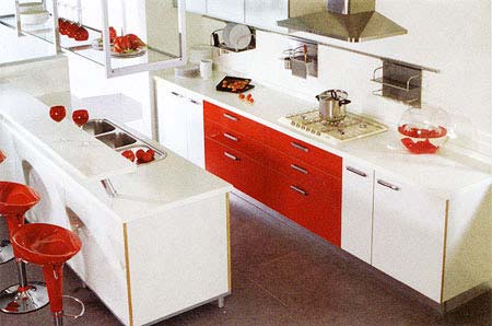 '更加合理地利用空間,營造出一種'喜歡做飯'的感覺'對(duì)于廚房主人來說最合理的布局,也往往最 能體現(xiàn)其個(gè)性,滿足其時(shí)尚需求。首先要考慮烹飪作業(yè)的方面:取用廚具要簡(jiǎn)單方便,物品收納要有條理,還要有專業(yè)的動(dòng)線規(guī) 劃。依據(jù)不同的地形條件可以選擇一字型,L型,U型或島型的整體布局。而主人的習(xí)慣和品位也極大地影響最終成形的設(shè)計(jì)。
