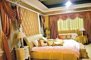 布藝賣場專設體驗式展廳,這是為歐式配置的窗簾
