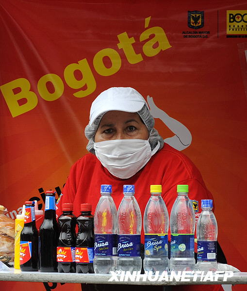 5月3日,一名戴著口罩的小販在哥倫比亞首都波哥大街頭等待生意。哥倫比亞社會保障和衛(wèi)生部長迭戈·帕拉西奧·貝坦科爾3日證實,一名最近從墨西哥返回的哥倫比亞人已被確認感染了甲型H1N1流感。新華社/法新