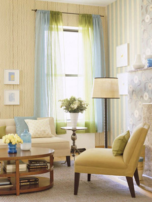 這個色彩繽紛的小休閑區(qū)是不是讓你心情大好?仔細看一看,其實空間本身的色調(diào)很中性化,用了淺褐色的家具和淡雅的黃色墻面。裝飾的重點在于那些表面布滿了花紋的的小配飾,天藍、紫紅、粉紅、淺綠……讓整個空間格調(diào)煥然一新,充滿女人味。