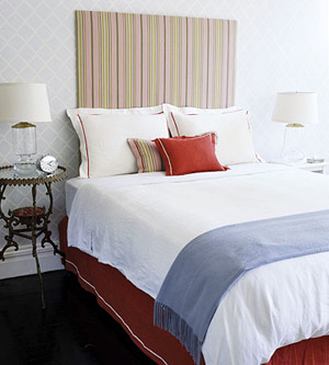 想像如果保留了這間房中所有的家具和擺設(shè),包括樣式精致的床、時尚的條紋長凳,只是把綠色換成深褐或者白色,會是什么樣子?硬件還是一樣的,但這個空間就已經(jīng)不再性感,不再個性。有時候,只需要使用一種亮眼的色彩,就可以把平庸沉悶的房間變得生動活潑。