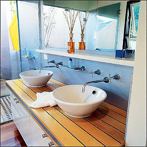 從目前順德的家裝市場(chǎng)看,裝修設(shè)計(jì)有效利用浴室空間成為主流,其中寬邊洗臉盆就是其中一種流行元素。臺(tái)下式、一體式掛墻、半臺(tái)上式等外形多樣,可以根據(jù)浴室裝修空間而量身定做。