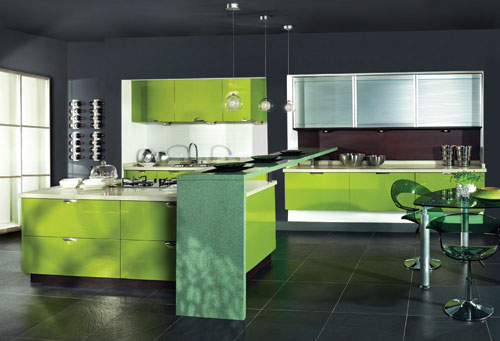 如果你自稱(chēng)是某一種顏色的狂熱忠實(shí)者,就該大膽地把自己喜愛(ài)的顏色運(yùn)用到廚房的各個(gè)角落里。從線條到色塊,從構(gòu)圖到形狀,木質(zhì)的、玻璃的、亞克力的,從操作臺(tái)到壁柜,從器皿到餐桌,黃綠的,草綠的,碧綠的,將綠色進(jìn)行到底,對(duì)于綠色的簇?fù)碚撸@是一件十分理所當(dāng)然的事情。