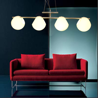 吊燈的組合形式多樣,單盞、三個一排、多個小燈嵌在玻璃板上的,還有由多個燈球排列而成的,體積大小各異。在選擇餐廳吊燈時,就要根據餐桌的尺寸來確定燈具的大小。餐桌較長,宜選用一排由多個小吊燈組成的款式,而且每個小燈分別由開關控制,這樣就可以依用餐需要開啟相應的吊燈盞數了。如果是折疊式餐桌,那就可以選擇可伸縮的不銹鋼圓形吊燈來隨時依需要擴大光照空間。而單盞吊燈或風鈴形的吊燈就比較適合與方形餐桌或圓形餐桌搭配了?!?