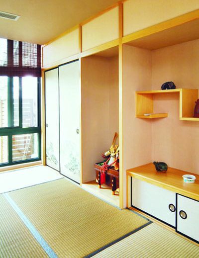 “和室”又被稱為“榻榻米屋”,是日式建筑的一大特色。由于其時尚的風(fēng)格、簡潔的樣式,在裝修時越來越受到部分年輕人的喜愛,而在人口稠密、屋價(jià)昂貴的都市建筑中,也可以發(fā)揮很大的居住功能。和室最大的有點(diǎn)在于充分利用了居室空間。同一房間可以當(dāng)客廳、飲茶聊天、生活起居、休閑中心、游戲場所或書房,到了晚上棉被一攤,還看自用當(dāng)臥室,他用為客房。所謂“一物多用,無中生有”是也。