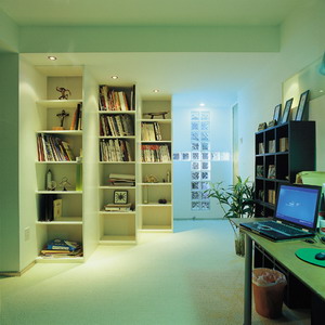 書房對于照明和采光的要求很高,寫字臺上要有臺燈,書柜里要用射燈,便于閱讀和查找書籍??煽紤]選用色度較接近早晨的柔和太陽光、不閃爍且光源穩(wěn)定的、能有效散熱的燈具,以減輕視覺負(fù)擔(dān)。光線均勻地照射在讀書寫字的地方,柔和明亮,避免炫光。書房一般采用較為自由的、可移動的燈具作為主要照明燈具。