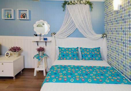 臥室的窗簾最好有兩層,外面的一層選擇比較厚的麻棉布料,用來遮擋光線、灰塵和噪音,營造好的休憩環(huán)境,里面一層可用薄紗、蕾絲等透明或半透明的料子,主要用來營造浪漫的情調(diào),顏色當(dāng)然要和房間整體的格調(diào)相宜,最好能根據(jù)季節(jié)的不同調(diào)換窗簾的顏色和質(zhì)地。