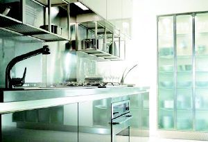 標(biāo)準(zhǔn)長度可折疊的玻璃門,采用寬闊的磨砂玻璃,柜內(nèi)餐具、器皿、廚具若隱若現(xiàn)。生動的背景光投射下,玻璃櫥柜使整個廚房營造出一種溫馨浪漫的氛圍。美觀大方的玻璃櫥門,有著不容小覷的實用性,通風(fēng)透氣,尋找東西也十分方便,不會因為要找一樣?xùn)|西,翻箱倒柜;櫥柜內(nèi)置輕巧的觸摸式感應(yīng)燈,白天日光和夜晚燈光的反射,能使廚房更明亮。玻璃櫥柜清淡的色澤,配合時柔和、時耀眼的光亮,化解了銀灰色金屬質(zhì)感廚具、櫥柜的枯燥乏味,頃刻之間,就把廚房變得平和而有趣。