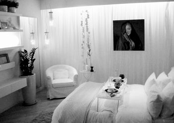 以白色為主色調(diào),希望客人能在一看見的瞬間就想走進來。由于是臥室,所以希望通過燈光來營造一個放松的環(huán)境,透過特別的燈光、香味和舒緩的音樂,創(chuàng)造一個最舒適的環(huán)境。