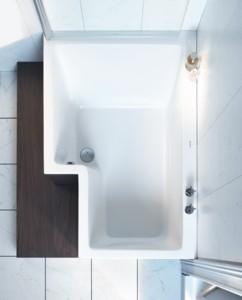 大大的浴缸滿溢著主人的幸福,但“大”并不總是討巧,衛(wèi)浴空間常常因為面積較小而無法盛放下一個方方正正的標準浴缸,勉強放下的話,要么空間失衡,要么局促狹窄,在要或不要浴缸的選擇中常常叫人為難。六角形的浴缸就是為這些家庭不好應(yīng)付的墻面直角而設(shè)計的。造型上,六角形很能打破房間的分隔感,使房間的線條更為柔和錯落。卡德維的TwinPool浴缸,內(nèi)部為橢圓形結(jié)構(gòu),緊湊的外形和六角形的設(shè)計適合在各種位置擺放,雖然看上去小巧緊湊,但是1米的寬度和47厘米的深度同樣確保了舒適的泡浴享受。如果擔心沒有額外放置沐浴用品空間的話,建議在浴缸周圍的墻壁上開一個七八厘米深的凹槽,再鋪上與墻壁相同的瓷磚,就可以隨意擺放東西了。最后別忘了搭配一款圖案清爽的浴簾,讓衛(wèi)生間看上去更加井然有序。