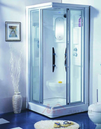 (5)淋浴房底盤分帶缸高盆和低盆兩種。帶缸式可坐人,適合有老人或小孩的家庭,還可一缸多用,洗衣、盛水等,但是搞衛(wèi)生麻煩。低盆比較簡潔,價格也低。底盤質(zhì)地分玻璃纖維、壓克力、金鋼石三種,金鋼石牢度最好,污垢清洗方便。