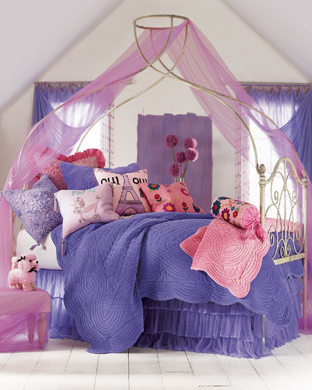 第二, 要給那些喜歡保有秘密和隱私的女孩創(chuàng)造一個(gè)私密空間。解決的辦法可以考慮在房間的墻與墻之間懸掛一幅薄紗窗簾,把房間做一個(gè)分隔,留出一處專門用于睡眠的空間。