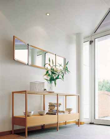 一面可大可小的鏡子可供整理妝容。如果放幾本書,丈夫等待出門前作最后準(zhǔn)備的妻子時(shí),就可以順手翻翻,消磨那段說不好是長是短的時(shí)間。而幾枝花草、幾件新穎活潑的小擺設(shè),使得整個(gè)空間轉(zhuǎn)瞬間靈動起來。