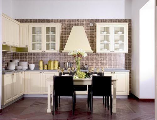 L式這種樣式是把儲存、洗滌和烹調(diào)的三個工作區(qū),按照順序設(shè)置于兩墻壁相接的呈900設(shè)計。此類房的開間約為1.8m左右,且有一定的深度,采用此模式較好。優(yōu)點(diǎn)是可以有效利用空間,操作的效率高。這種模式比較普遍。