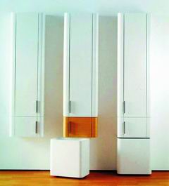 這種超長柜體的容納能力驚人,層層堆放的浴巾、有一定高度的洗浴液,還有不便暴露在外人面前的衛(wèi)生用品都可以藏在里面,可以在下部對接上橫截面一致的腳輪柜。