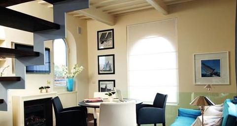客廳內(nèi)大面積的窗戶,讓陽(yáng)光暢通無(wú)阻。同時(shí)將街景以及佛羅倫薩幾百年的老建筑像畫(huà)一樣呈現(xiàn)在公寓內(nèi)。加上開(kāi)敞式的設(shè)計(jì),使得整個(gè)公寓一層顯得非常寬敞和舒適。