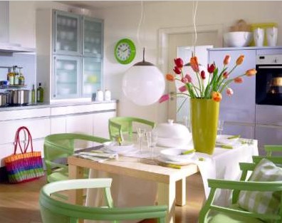 (2)餐桌宜選圓形或方形:中國的傳統(tǒng)宇宙觀是“天圓地方”,因此日常用具大多以圓形及方形為主,傳統(tǒng)的餐桌便是典型的例子。傳統(tǒng)的餐桌形如滿月,象征一家老少團圓,親密無間,而且聚攏人氣,能夠很好地烘托進食的氣氛,早已深人人心。至于方形的餐桌,小的僅可坐四人,稱為四仙桌;大的可坐八人,又稱八仙桌,因它象征八仙聚會,也很吉利,方正平穩(wěn),象征公平與穩(wěn)重,雖然四邊有角,但因不是尖角而無殺傷力,因此被人樂于采用。