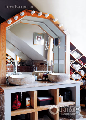 李慧并沒有為家中的基材大費(fèi)周章,采購起來當(dāng)然簡單。純色的墻漆,質(zhì)樸的地面,只要環(huán)保,簡單地打底才能賦予空間更大的自由度。從機(jī)場路邊的石雕市場淘來的花園水池造景石雕,還有每個衛(wèi)生間不同的石鑿池盆,最美的就是主衛(wèi)中兩個嵌在圓石中的瓷盆,猶如兩塊半包在皮子中的潤玉,令人愛不釋手,不禁感嘆:“這怎會是路邊淘來的便宜,放到任何一個高檔衛(wèi)浴店都會價值不菲?!?