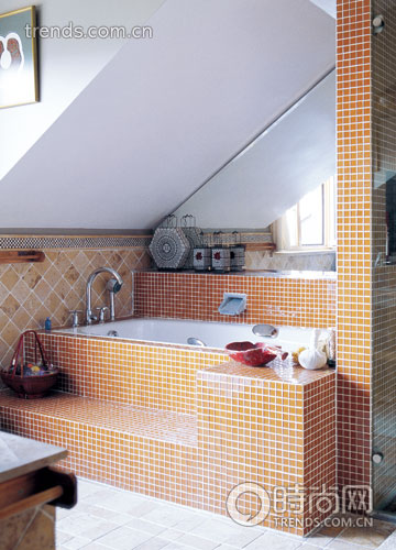 大角度的斜頂,恰好可以為私密的衛(wèi)浴空間提供被包裹的安全感。
