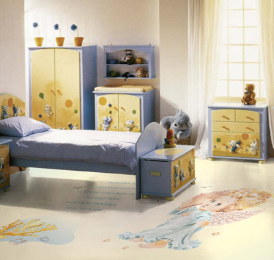 兒童房的裝修,地板是一個重點。因為孩子離開搖籃后,地板自然就成了他們接觸最多的地方。孩子將不管您為他們提供什么座椅,他們仍然喜歡在地板上爬、躺。地板是他們最自由的空間。