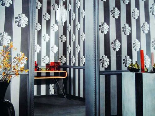 2、豎條紋圖案增加居室高度。長條狀的花紋墻紙具有恒久性、古典性、現(xiàn)代性與傳統(tǒng)性等各種特性,是最成功的選擇之一,它可以把顏色用最有效的方式散布在整個墻面上,而且簡單高雅,非常容易與其他圖案相互搭配。稍寬型的長條紋適合用在流暢的大空間中,能使原本高挑的房間產(chǎn)生向左右延伸的效果;而較窄的圖紋用在小房間里比較妥當(dāng),它能使較矮的房間產(chǎn)生向上引導(dǎo)的效果。