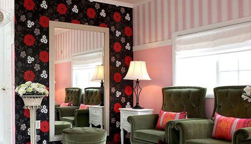 今季流行的花朵壁紙,無論是妖嬈的大花圖案,還是鄉(xiāng)村的碎花印染,亦或單純簡潔的幾何肌理外表,都較以往多了幾許的柔美情懷。鮮艷炫目的圖案與花朵最搶眼,有些花朵圖案逼真、色彩濃烈,可以降低房間的拘束感,適合格局較為平淡無奇的房間。