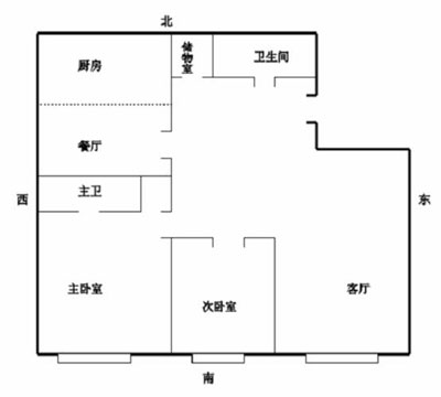 1、此戶型圖為東北缺角,東北角凹進(jìn)去了3分1的位置,那么東北角代表著家中的男子,和在商業(yè)中的地位,也可稱為靠山,如果沒有了東北角,那么就象當(dāng)于沒有了靠山、財山和地位,或者是家中的男子不成器。