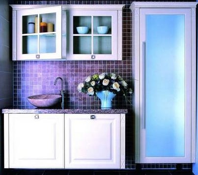 在衛(wèi)生間中,坐便器和洗手池上方的空間是最易被忽略的??梢栽诖颂幯b一排櫥柜,置放種類繁多的洗浴用品,你會發(fā)現(xiàn)這樣一來,衛(wèi)生間不但整潔了許多,使用起來也更加方便了。
