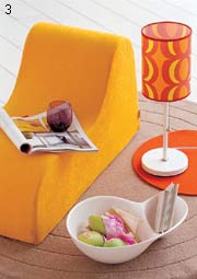 3 這個(gè)精致的沙發(fā)椅具有優(yōu)美的曲線(xiàn),同時(shí)也很符合人體學(xué)原理,與臺(tái)燈也很相配。不同黃色的組合和各種曲線(xiàn)的構(gòu)造給人柔美舒適之感。