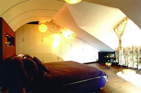 適用房間:多見于別墅,適合層高特別高或者頂面是尖屋頂?shù)姆块g,要求空間最低點(diǎn)大于2.6米,最高點(diǎn)沒有要求,通常在四五米左右。